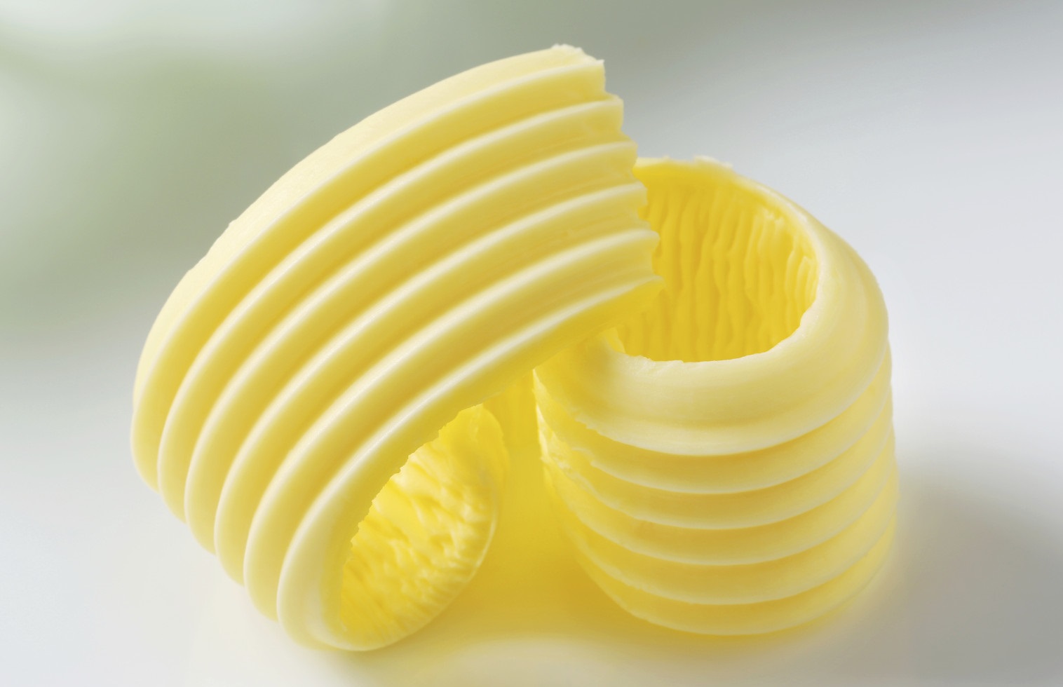 The fatty portion of milk, separating asa soft whitish or yellowish solid when milk or cream isagitated or churned.